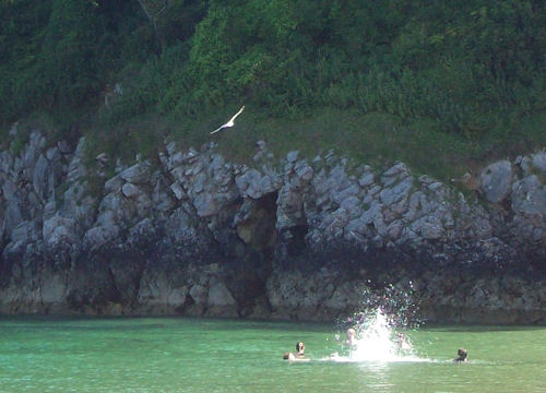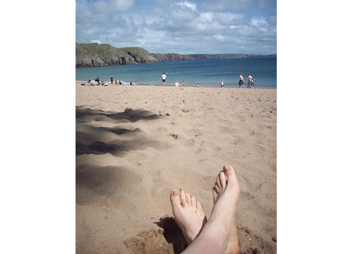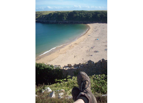Tag 7 - Pembroke Castle Sonntagmorgen - und es regnet tatsächlich! Nach einem königlichen Frühstück mit Spiegelei, Würstchen, Bohnen, Champignons, Bacon und Toast setze ich mich an den Computer, der im Gemeinschaftsraum steht. Der navigiert zwar mit Schneckentempo durchs Internet, aber immerhin. Ich kopiere alle Fotos von der Speicherkarte auf den USB-Stick, bestelle einen neuen Computer (hatte immerhin 5 Tage Zeit zum Überlegen!) und erledige noch andere "wichtige" Sachen. Zum "Genuß-Surfen" ist der Computer zu langsam und der Raum zu ungemütlich. Also bleibe ich weiter uninformiert. Danach mache ich mich im leichten Nieselregen auf den Weg, um mir die Beine zu vertreten, Pembroke zu erkunden und ein paar Kleinigkeiten einzukaufen und lande unverhofft im Pembroke Castle (wiki.de bzw. eigene Website) - und komme gerade recht für die 11:00 Uhr - Führung, die im Eintrittspreis von £ 6,00 enthalten ist. (Dieses Foto habe ich im Tag zuvor gemacht, da war es sonnig gewesen...) Es sind eine Menge Leute da, wir werden auf 2 Gruppen aufgeteilt, und dann geht's auch schon los! Wir erfahren viel über die Burg, und noch mehr über die verschiedenen Besitzer bzw. Burgherren, die im Lauf der Jahrhunderte dort schalten und walten konnten. Der ganze Stolz ist der große runde Hauptturm ("Great Keep") - er gehört zum ältesten Bereich der Burg und ist noch im Originalzustand. Der Turm, erbaut von William Marshal (wiki, dt.), hat einen Mauerdicke von 5m und eine steinerne Kuppel, was zur damaligen Zeit (Ende 12. Jhdt.) in Europa eine Besonderheit war. Die Führung ist interessant und sehr unterhaltsam, der Guide legt den Fokus vor allem auch auf die Persönlichkeiten der diversen Burgherren und -fräuleins. Die Burg war 1648 von Oliver Cromwell nach dem Ende einer siebenwöchigen Belagerung (Wiki, en.) systematisch zerstört worden und dann beinahe 300 Jahre dem Verfall preisgegeben. In den späten 1920er-Jahren wurde sie umfassend restauriert und der komplett verfallene vordere Eingangsbereich ("Gatehouse") wieder neu aufgebaut. Pembroke Castle war auch schon Drehort für Filme, unter anderem 2011 für einen Teil der "Hollow Crown" - Serie (BBC, Shakespeare): Richard II. Die Burg ist auf einer Klippe errichtet und auf drei Seiten von Wasser umgeben - im Felsen gibt es eine natürlich enstandene Höhle, die über eine Wendeltreppe in die Burg integriert wurde. Trotz der halsbrecherischen Treppen hat man als Besucher dort überall Zugang! Die Führung endet mit der Geschichte der bekanntesten Persönlichkeit, die mit Pembroke Castle verknüpft ist: King Henry VII (wiki, dt.), einziger Sohn von Margaret Beaufort und Edmund Tudor - geboren in Pembroke Castle und erster König aus der Tudor-Familie. Auch wenn ich zugeben muss, dass mich dieser "Royals" - Schmarrn nicht interessiert, war die Darstellung der Geschichte sehr interessant - der Guide hat nämlich die Mutter Margaret Beaufort (wiki, dt.) zum Fokus gemacht und erzählt, wie geschickt und strategisch diese Frau agiert haben muss, um ihren Sohn 1. am Leben zu erhalten und 2. an die Macht zu bringen. Dazu muss man wissen, dass sie als Zwölfjährige mit Edmund Tudor verheiratet wurde, um möglichst viele Kinder zu produzieren, auf dass wenigstens eines irgendwann an den Thron kommen möge - damals waren gerade die Thronfolgekriege zwischen den Adelshäusern York und Lancaster im Gange ("Wars of the Roses" wiki, dt.). Als 13-jährige brachte sie unter Komplikationen Sohn Henry zur Welt, der auch ihr einziges Kind bleiben sollte. Und trotzdem gelang es, ihn zum König zu machen und durch geschicktes Verheiraten die beiden verfeindeten Häuser im Jahr 1485 im Haus Tudor zu vereinigen. Und heute, ein halbes Jahrtausend später, gibt's dazu sogar eine TV-Serie: Die Tudors (wiki, dt.) Nicht, dass ich mir das ansehen würde. *grusel* Nach etwa 2 Stunden habe ich dann aber genug, und ich kehre in mein Zimmer zurück. Abgesehen von der Führung ist dieser Sonntag ein Faulenzertag. Ich lese, esse, schaue fern und pflege meinen Sonnenbrand, der glücklicherweise sehr milde ausgefallen ist. Tag 8 - Barafundle Bay Dienstag, mein letzter Tag in Wales. Der Wetterbericht prophezeit ähnliches wie gestern: In der Früh regnerisch, später dann sonniger, aber nicht mehr ganz so warm. Ich entscheide mich dafür, am Nachmittag noch mal Barafundle Bay zu besuchen. Ein wenig in der Hoffnung, dass - wenn das Wetter nicht so mitspielt - weniger los sein würde. Die Anreise mit dem Bus ("Coastal Cruiser") klappt auch dieses Mal wieder einwandfrei, ich fahre bis Stackpole Quay, von da aus ist es ein 10-minütiger Fußmarsch bis zur Bucht. Auf dem Weg überhole ich eine riesige Familie mit allerlei Badeutensilien... Soviel zum Thema "weniger los". Das Wetter ist wesentlich besser als angekündigt, auch wenn es beim Herumsitzen mit der Zeit ziemlich kühl wird. Es sind auch tatsächlich spürbar weniger Menschen da als am Freitag. Da ein fauler Tag am Strand nicht allzuviel Stoff für Erzählungen bietet (ich hab' gelesen, aufs Meer gestarrt, bizarren Sandkreaturen zugesehen, Reiseproviant verspeist und die Füße ins Wasser gehalten), ein paar wissenswerte Details: Der "Pembrokeshire Coast Path" ist Teil des 1.400km langen "Wales Coast Path" (Wiki, dt.) und einer von zahlreichen "National Trails" in Großbritannien. Der Wales Coast Path ist der erste und längste (zusammenhängende) Fernwanderweg entlang einer Küste (anscheinend weltweit!) und wurde 2012 offiziell eröffnet. Den knapp 300km langen Pembrokeshire Coast Path (Wiki, dt.) gibt es allerdings schon seit 1970. Der Coast Path führt durch den "Pembrokeshire Coast Nationalpark" (wiki, dt.), der 1952 eingerichtet wurde. Die Fertigstellung des Coast Path hat dann 17 Jahre gedauert: mehr als 100 Fußbrücken wurden errichtet, an 479 Stellen mussten Passagen über Zäune (bzw. Tore) hergestellt werden, tausende Stufen wurden an steilen oder rutschigen Stellen in Hänge gehauen. Zahlreiche Strände entlang des C