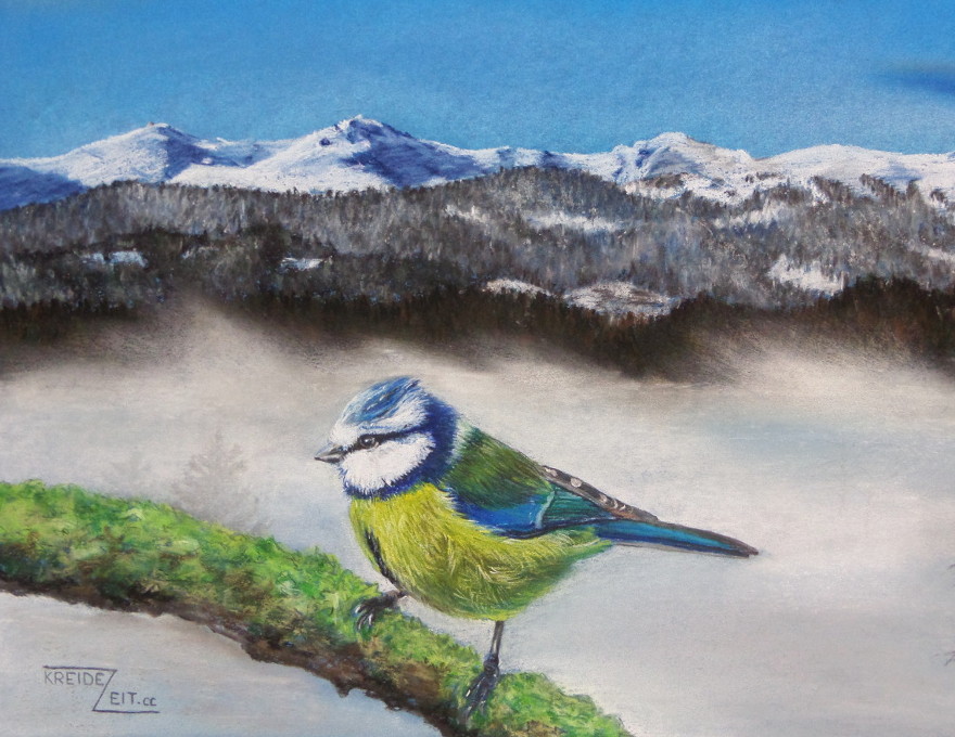 mit Blaumeise, 2018 Pastellkreiden (auf Naturpapier) » High Quality » Detail 1 |